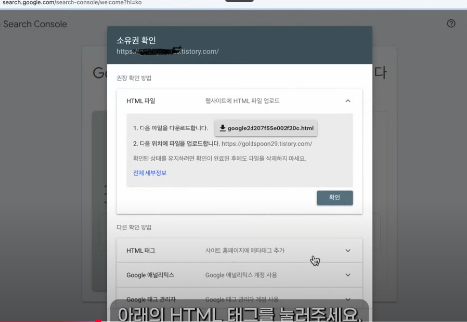 구글은 내 블로그가 실제로 내 소유인지 확인하기 위해 HTML 태그 인증을 요구합니다.